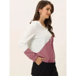 Allegra K Women’s Color Block Drawstring Hem Long Sleeve Sport Hooded Zip Lightweight Jacket