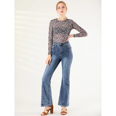 High waist and relaxed wide legs give these stretch-denim jeans that vintage look. Soft and stretchy denim make these flared jeans an impeccably smart and comfortable choice. For tall women, it can match a pair of flat oxford shoes, instantly becoming the focus of the crowd. Retro bell-bottomed pants, to highlight the leg line. With a pair of high-heeled boots, very fashionable.