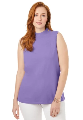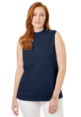 Great summer style is easy with this endlessly comfortable tank. Gold buttons elevate this classic silhouette to a dazzling warm-weather staple.