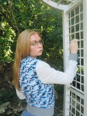 Add some edge to your casual look with this women’s camouflage baseball jacket. This jacket features a 100% cotton body with nylon sleeves for a contrast of textures and colors. The jacket has a zip front, ribbed cuffs and hem. Whether you pair it with jeans, leggings, or a skirt, this jacket will make you stand out from the crowd.