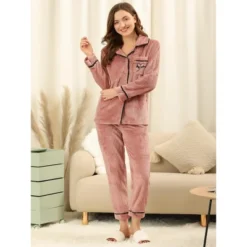 Cheibear Women’s Sleepwear Lounge Elk Christmas Winter Long Sleeves With Pants Pajama Sets