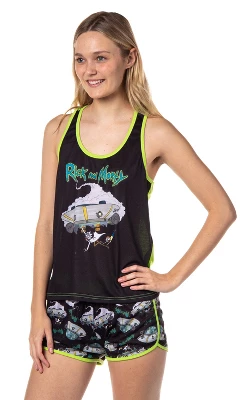 - CLASSIC CHARACTER DESIGN – This Rick and Morty tank-top pajama set features the two iconic characters falling out of their exploded spaceship, and the shorts feature the same icon in a tossed print, along with the Rick and Morty TV show title logo. They’re perfect for fans of the series!