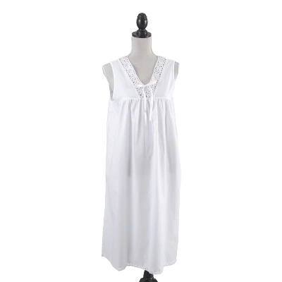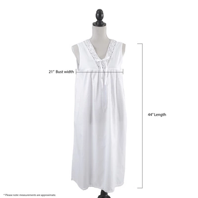 Relax and unwind every night with this casual, yet very stylish Embroidered Design Nightgown, a versatile addition to your evening wardrobe. Made with high-quality, 100% cotton and accented with delicate embroidery, this long women’s nightgown is both cozy and flattering. The sleeveless design makes it perfect for hot summer nights.