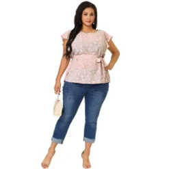 Agnes Orinda Women’s Plus Size Round Neck Lace Swing Yoke Top