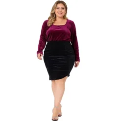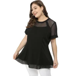 Agnes Orinda Plus Size Peplum Top For Women Polka Dots Sheer Puff Sleeve Velvet Top