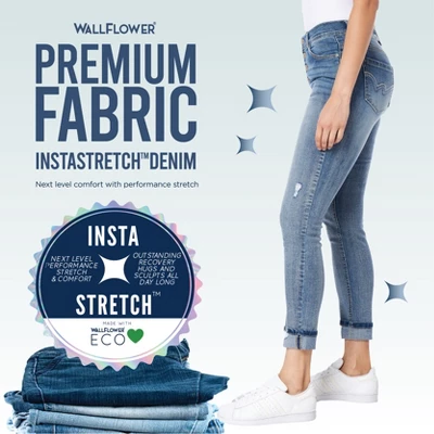 - QUALITY MATTERS: WallFlower’s premium feel, Insta Stretch performance denim. Our stretchiest, never-loses-its-shape denim with endless holding power, and outstanding recovery.