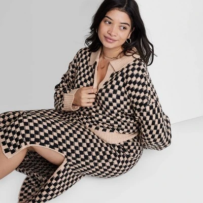 Women’s Ascot + Hart Collared Checkered Long Sleeve Graphic T-Shirt