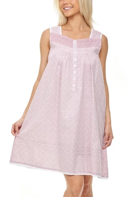 Women’s Cotton Victorian Nightgown, Hannah Sleeveless Lace Trimmed Button Up Short Vintage Night Dress Gown