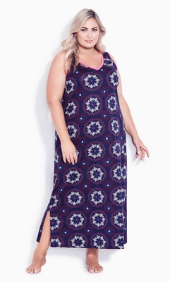 Women’s Plus Size Side Split Sleeveless Print Maxi Sleep Dress – Violet | AVENUE